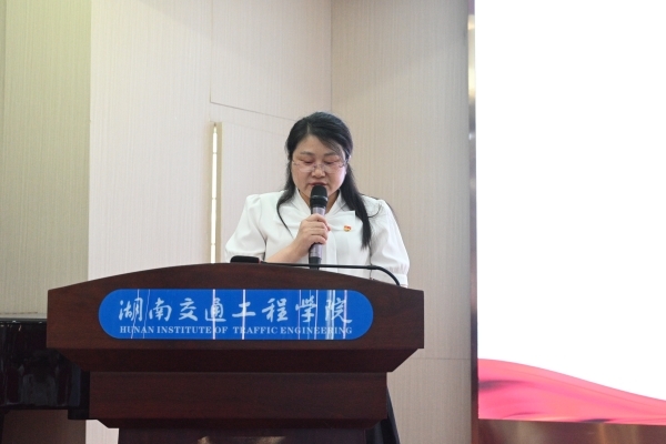 指导教师代表交通运输工程学院党总支副书记肖桂香在发言中勉励同学们珍惜实践机会,听从安排指导,在奉献社会、服务人民中受教育,砺意志,淬青春,练本领,长才干,做贡献。