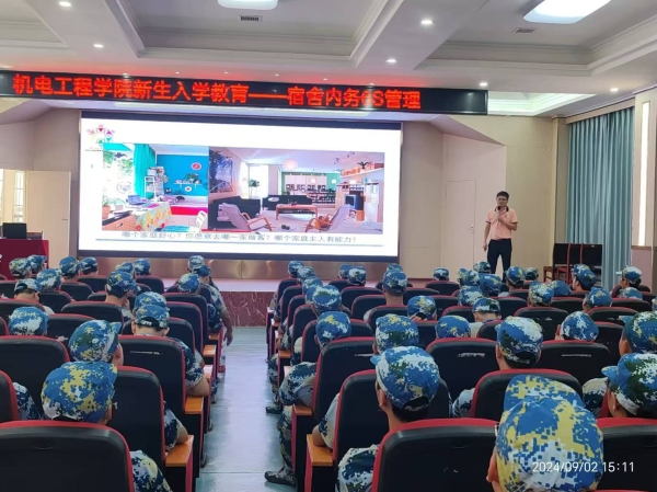 为贯彻落实《beat365唯一官方网站2024级新生军训与“一学期体验入学教育”实施方案》的文件精神,进一步提升学院宿舍管理的精细化水平,规范学生日常行为,增强学生的自我管理和生活自理能力,机电工程学院于9月2日下午三时成功举办了一场别开生面的新生入学教育之宿舍6S管理讲座活动。此次活动不仅是一次内务整理的实操演练,更是学院管理育人、文化育人理念的一次生动实践。