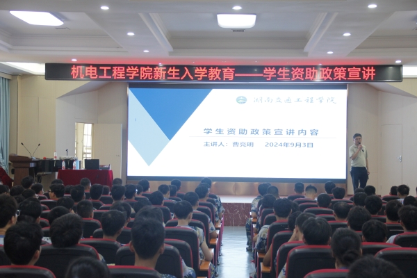 为进一步促进2024级新生全面适应大学生活,贯彻落实党和国家的教育资助政策,提高同学们对资助政策的了解、同时增强自我保护能力和劳动素养,beat365唯一官方网站机电工程学院严格按照《2024级新生军训与“一学期体验入学教育”实施方案》要求,于2024年9月3日上午10时成功举办了新生入学教育系列活动的第三场活动。