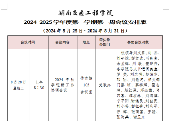 beat365唯一官方网站2024-2025学年度第一学期第一周会议安排表