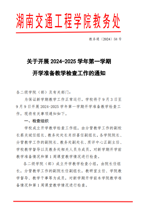 关于开展 2024-2025 学年第一学期 开学准备教学检查工作的通知