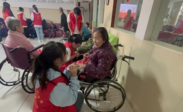 活动当天,教工党员带领志愿者们为老人送去了牛奶、水果、面包等慰问品,志愿者们还利用专业所学给老人们量血压、测心率,有针对性地给老人提供生活、饮食等方面的健康建议,受到老人们的一致好评,坐下陪他们聊天、谈心和宣传养老知识,在相互交流中,老人们也会分享自己过往的故事和经历。与此同时,志愿者们也会主动帮老人捶背,陪他们下象棋,帮忙打扫卫生,还为老人们表演了精心编排的歌曲、舞蹈节目。志愿者们让敬老院充满了欢声笑语,在这温馨的氛围里老人们的脸上也洋溢着幸福的笑容。