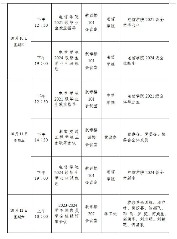 beat365唯一官方网站2024-2025学年度第一学期第六周会议安排表