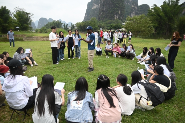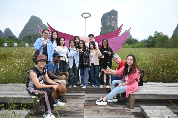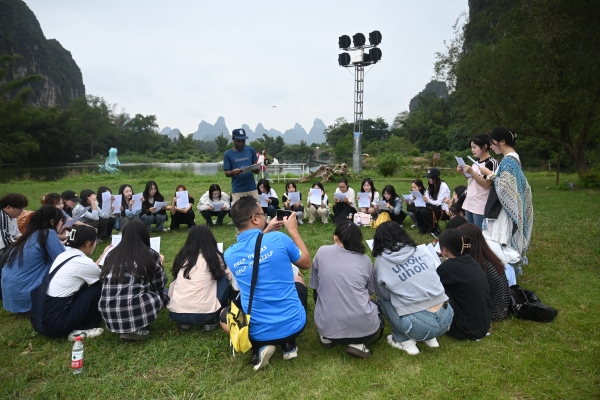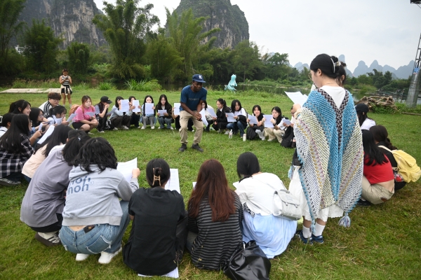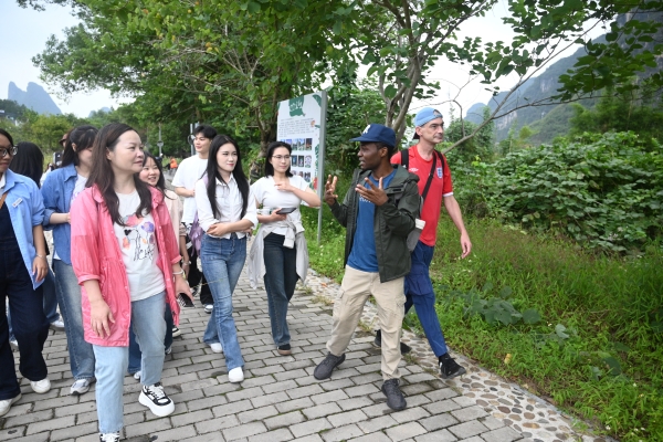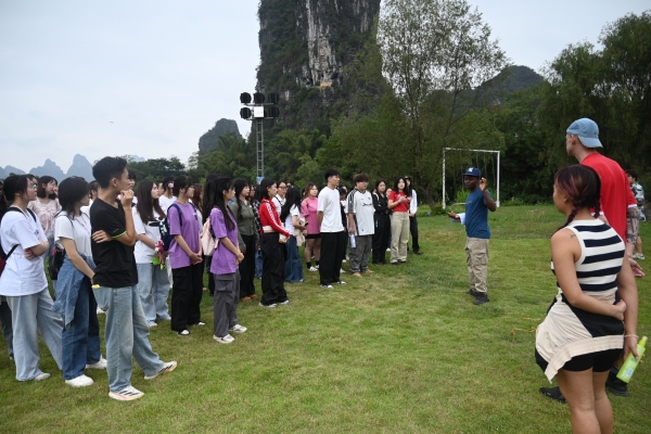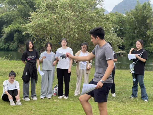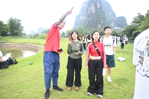 生态步道、工农桥、月亮山、农家饭、蝴蝶泉……每到一处,Ash、Imma外教团队都会耐心地解说和互动,微风浅浅,云散花间。与外教的互动,同学们的争相留影,以及团队实训任务的完成,又让遇龙河染上几许凡尘的味道,  向善向梦向云端,大家真正领略到了阳朔绝美的自然风光和独特的人文气息。