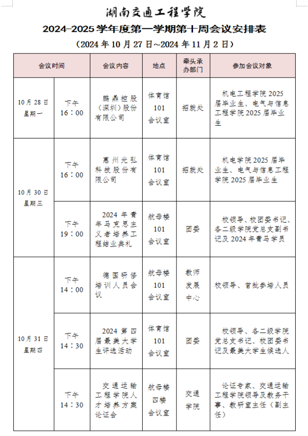 beat365唯一官方网站2024-2025学年度第一学期第十周会议安排表