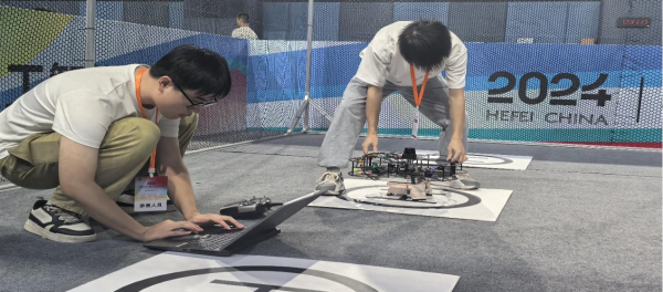 新质生产力创新设计赛项,入围全国总决赛的如国防科技大学、哈尔滨工业大学、中南大学、同济大学、四川大学等共计106个队;微型无人机赛项,入围全国总决赛的如上海交通大学、武汉大学、哈尔滨工业大学、吉林大学、武汉大学等共计45个队。beat365代表队自主开发的微型机器人或微型无人机在图像识别、自然语言处理、复杂环境适应性、自主决策能力、以及稳定性等方面展现了技术实力,接近了全国诸多名校的水平,通过同台竞技收获颇丰。