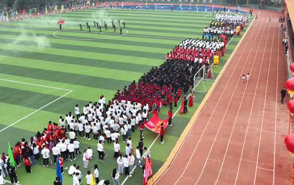 伴随着慷慨激昂的《运动员进行曲》开幕式进行了文艺表演,乐队演奏、武术表演、舞蹈表演和舞龙等表演,优美的身姿,整齐划一的动作和青春焕发的风貌,展现出“运动, 快乐, 健康, 活力”的参赛精神,赢得全体师生阵阵喝彩。