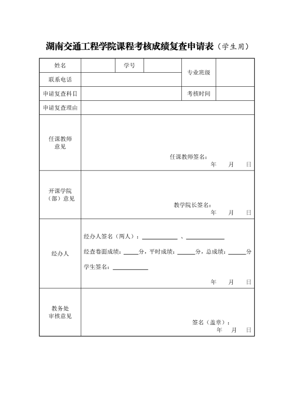 beat365唯一官方网站课程考核成绩复查申请表(学生用)