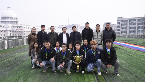 ▲校领导与获奖师生合影
