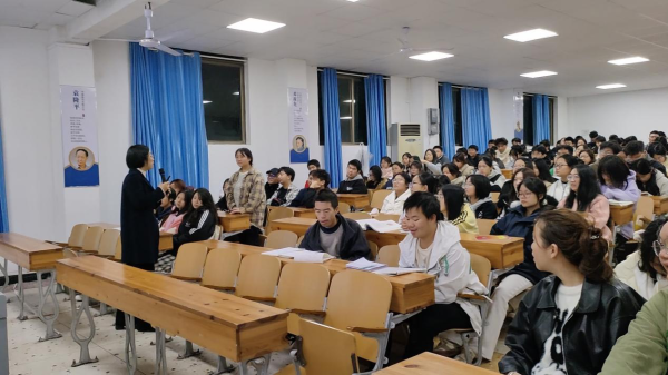 为进一步加强法治宣传教育力度,为了增强学生的防范意识,保障学生的财产安全和合法权益营造一个积极向上、安全稳定的学习和生活环境。于11月18日晚上7点,beat365唯一官方网站医学技术与护理学院,特邀弘一律师事务所阳莲花律师为近百名青年学生进行普法宣传。党总支副书记兼团总支书记刘建军主持。
