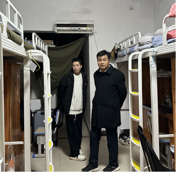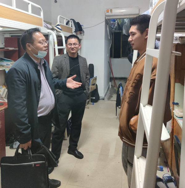 检查期间,名誉校长刘平娥、副校长余孟辉深入宿舍,与同学们亲切交流,了解学习生活近况,还前往楼栋“党员活动室”查阅相关台账,暖心传递安全理念。同学们积极回应,13 栋医学技术与护理学院李同学表示:“学校检查让我们深知安全重要,一定守规护舍。”