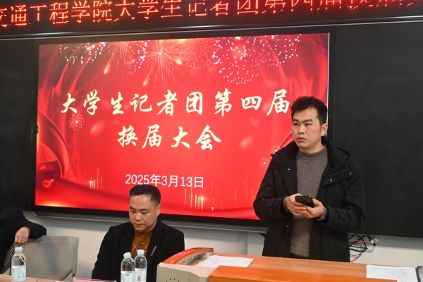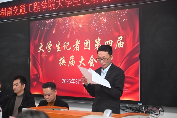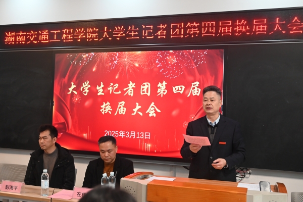 本网讯(通迅员 何心怡 摄影 大学生记者团张明煜) 3月13日中午,学校大学生记者团第四届换届大会暨2025年第一次工作会议在航母楼301会议室召开。党委宣传部部长赵红深出席会议并讲话,湖南日报集团华声在线衡阳站长彭海平、副站长左林生应邀莅临作新闻写作培训。党委宣传部李水华、邓翔、胡子婷老师,辅导员代表何心怡出席会议,记者团全体成员参加会议。大会由记者团摄影部张美琳主持。