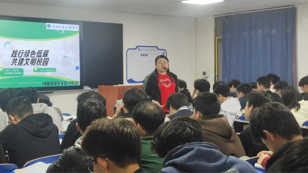 随后,同学们围绕“如何践行绿色低碳,共建文明校园”主题展开了热烈讨论,并结合自身实际,提出了许多切实可行的建议。例如:减少一次性用品使用、积极参与垃圾分类,自觉进行垃圾分类投放、节约水电资源,做到人走灯灭,随手关水龙头,杜绝长明灯、长流水现象、维护校园环境卫生,不乱扔垃圾,不随地吐痰,积极参与校园清洁活动。辅导员号召全体同学从自身做起,从点滴做起,积极参与到绿色低碳校园建设中来,共同营造文明、整洁、安全的校园环境。