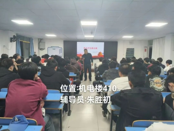 2025年3月23日,正值周日,当日晚上19:00,机电工程学院组织全体在校学生开展了本学期第五周的主题班会。本次班会以“迎评促建 全员行动”为核心主题,聚焦本科教学工作合格评估冲刺阶段的各项任务,旨在全面动员全体学生积极参与到评估工作中来,为学校高质量通过复评奠定坚实基础。