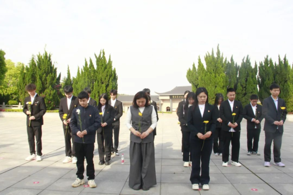 放映结束,师生们带着观影后内心的震撼,脚步沉重地迈向庄严肃穆的纪念碑。所有人神情肃穆,在辛敬凤书记的带领下,低头默哀一分钟,现场万籁俱寂,大家神情凝重,垂首默哀,用无声的敬意,向为国家、为人民英勇献身的先烈致以最崇高的礼赞。