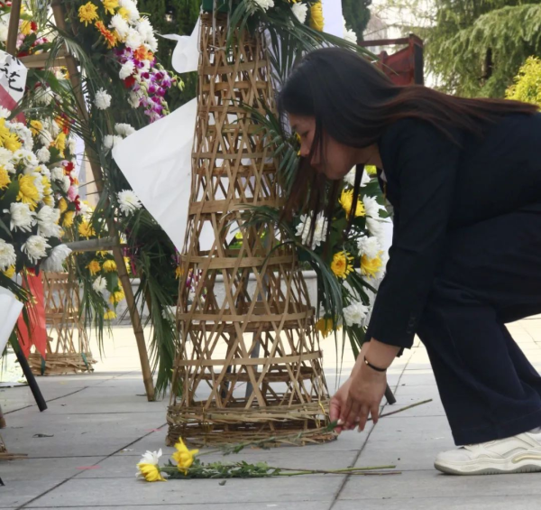 默哀结束后,师生们手捧鲜花,依次排好队,缓缓走到纪念碑前,轻轻献上手中的鲜花,寄托对先烈的无限追思。献花仪式结束后,全体人员有序环绕纪念碑一周,瞻仰纪念碑上的英雄事迹,表达对先烈的缅怀之情。