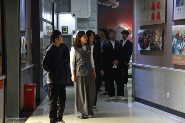 随后,师生们步入纪念馆展厅。展厅内一幅幅珍贵历史照片,生动的展现了英雄们在不同历史时期为国家独立,民族解放和人民幸福所做出的巨大贡献。辛敬凤书记结合展厅饱含故事的文物,讲述革命先烈们英勇抗争的故事,以及英雄们的无私奉献。让大家对那段历史有了更直观的认识。同学们听得认真,不时提出问题,现场学习氛围浓厚。