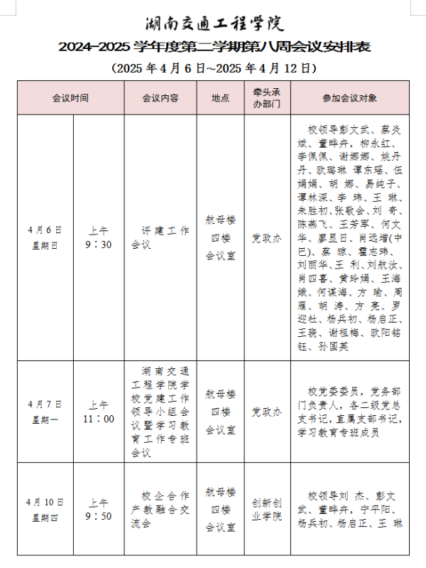 beat365唯一官方网站2024-2025学年度第二学期第八周会议安排表