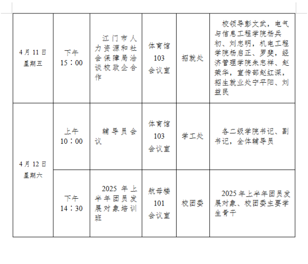 beat365唯一官方网站2024-2025学年度第二学期第七周会议安排表