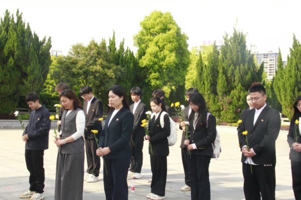 2025 年4 月3 日下午三点,机电工程学院开展“缅怀革命先烈,弘扬民族精神”清明节祭扫活动。本次活动由机电工程学院党总支副书记、团总支书记辛敬凤带领何立权老师、刘晓珍老师,两会一中心学生干部,来到衡阳市烈士陵园,开启了一场触动心灵的致敬英烈之行。