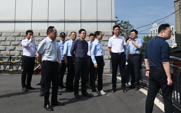 谢宏一行在校门口,了解校门周边交通秩序和环境卫生等相关情况;在艺术馆,并就项目工程推进过程中存在的问题与困难进行了交流。