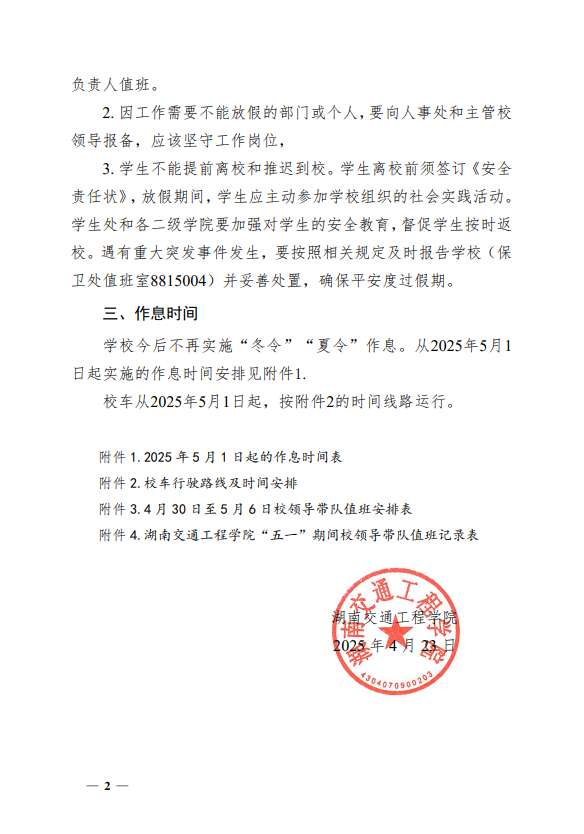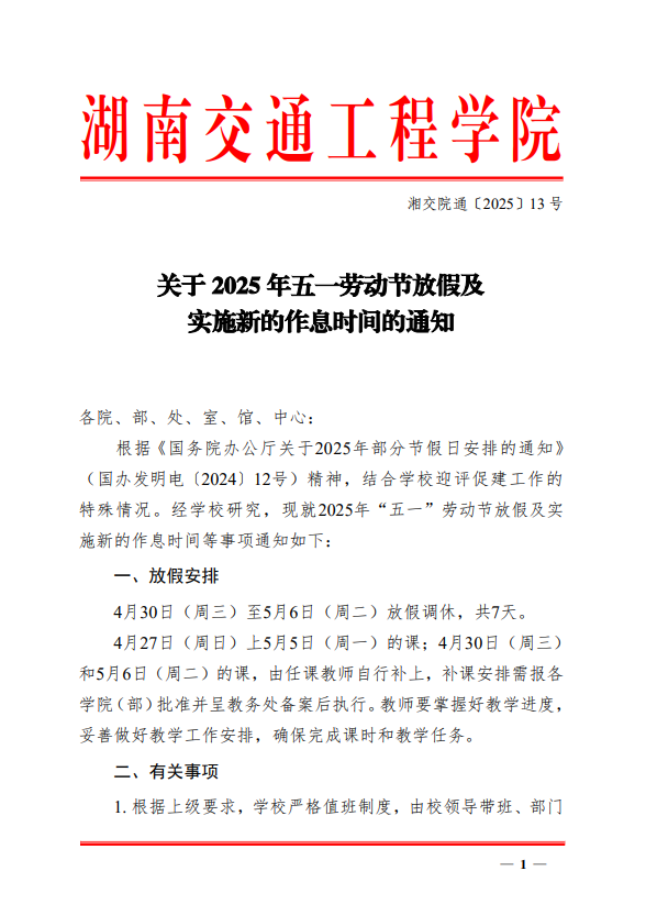 关于 2025 年五一劳动节放假及实施新的作息时间的通知