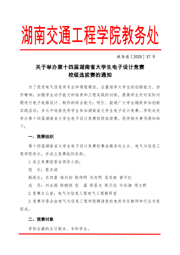关于举办第十四届湖南省大学生电子设计竞赛校级选拔赛的通知.pdf