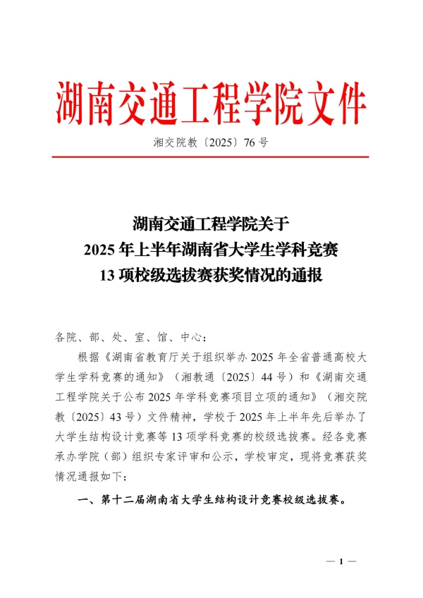 关于2025 年上半年湖南省大学生学科竞赛13 项校级选拔赛获奖情况的通报