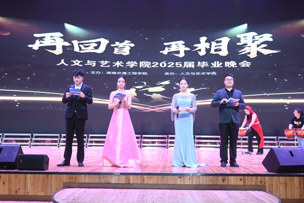 本网讯(记者 赵红深 李水华 邓翔 摄影 大学生记者团 胡子婷 徐 薇 张海容 彭程 张明煜 张美琳 曾垂洋)“回首过往,那些年华如歌、青春如画的日子历历在目。交院,这片滋养我们梦想的沃土,见证了我们的成长与蜕变。”6月16日晚7点30分,由学校主办,人文与艺术学院承办,校团委、学生工作处、各二级学院协办的“再回首·再相聚”2025届毕业文艺晚会在学校新竣工的音乐艺术馆首次倾情上演。师生们汇聚一堂,共同回忆这段珍贵而难忘的时光,为2025届毕业生送上真挚温暖的祝福。校党委书记刘文君、高级顾问韦成龙、常务副校长彭文武,副书记冯良贵,副校长余孟辉、蔡炎斌等领导及各机关处室、各二级学院师生代表近2000人观看了本场演出。