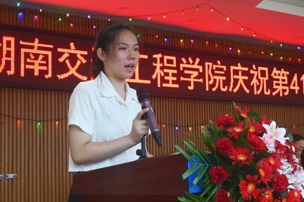 经济管理学院国贸2201班邓捷文代表学生发言,她向所有孜孜不倦,辛勤耕耘在教学一线的老师们致以崇高的敬意和感谢。她说:“作为新时代大学生,能回报老师的就是牢记你们的教育,努力学习、奋勉向上,认真踏实的学好老师教给我们的学问和技能,使自己成长为有益于社会、服务于社会、奉献于社会的高素养应用型人才。