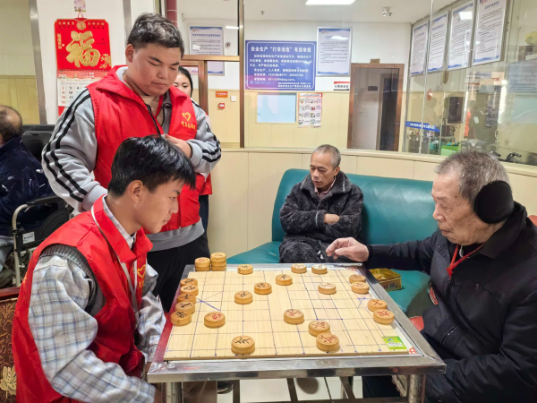 活动现场气氛活跃,温情四溢。多才多艺的同学们陪老奶奶们唱起了经典红歌,熟悉的旋律勾起了老人们的美好回忆,不少人跟着轻声哼唱;有的同学伴着音乐跳起了欢快的舞蹈,赢得了阵阵掌声;而在另一隅,棋艺切磋正酣,同学们与老爷爷们围坐对弈,在楚河汉界间交流互动,展现智慧与乐趣。丰富多彩的活动为平日清静的敬老院注入了蓬勃的朝气与活力。