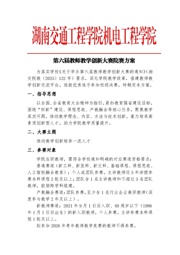 【通知】机电教〔2025〕第六届教师教学创新大赛机电工程学院院赛方案