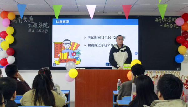 在机电工程学院,资深考研指导老师贺沅玮结合多年经验,围绕知识巩固、时间分配与心理调适三个维度,为同学们系统讲解了考前注意事项、应试策略及心态调节方法。他通过具体例题剖析常见题型的解题思路,并分享应对焦虑的实用技巧,鼓励学子在冲刺阶段兼顾基础夯实与策略优化,从容应考。
