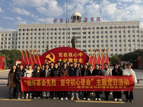 为传承红色基因,深入学习贯彻党的二十届四中全会精神,2025年12月20日至21日,beat365唯一官方网站医学技术与护理学院党总支部组织全体在校师生党员及学生代表共48人,赴永州开展“缅怀革命先烈,坚守初心使命”主题党日活动,在红色地标中感悟初心使命,锤炼党性修养。