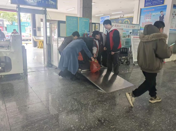 在邵阳市武冈北站,邓集煜的身影同样活跃在春运一线。作为暖冬行动的志愿者,他每天早早来到车站,为返乡旅客提供购票引导、行李搬运、信息咨询等志愿服务。面对冬日严寒与密集客流,他始终面带微笑,用热情的话语和及时的帮助为归乡人驱散旅途疲惫。一位带着两个孩子和一大件行李的大姐在邓集煜的帮助下顺利进站,连声道谢:“小伙子真热心,让我觉得回家的路更温暖了。”他表示,虽然每天工作很忙,但看到旅客们舒心的笑容,所有的付出都充满了意义。