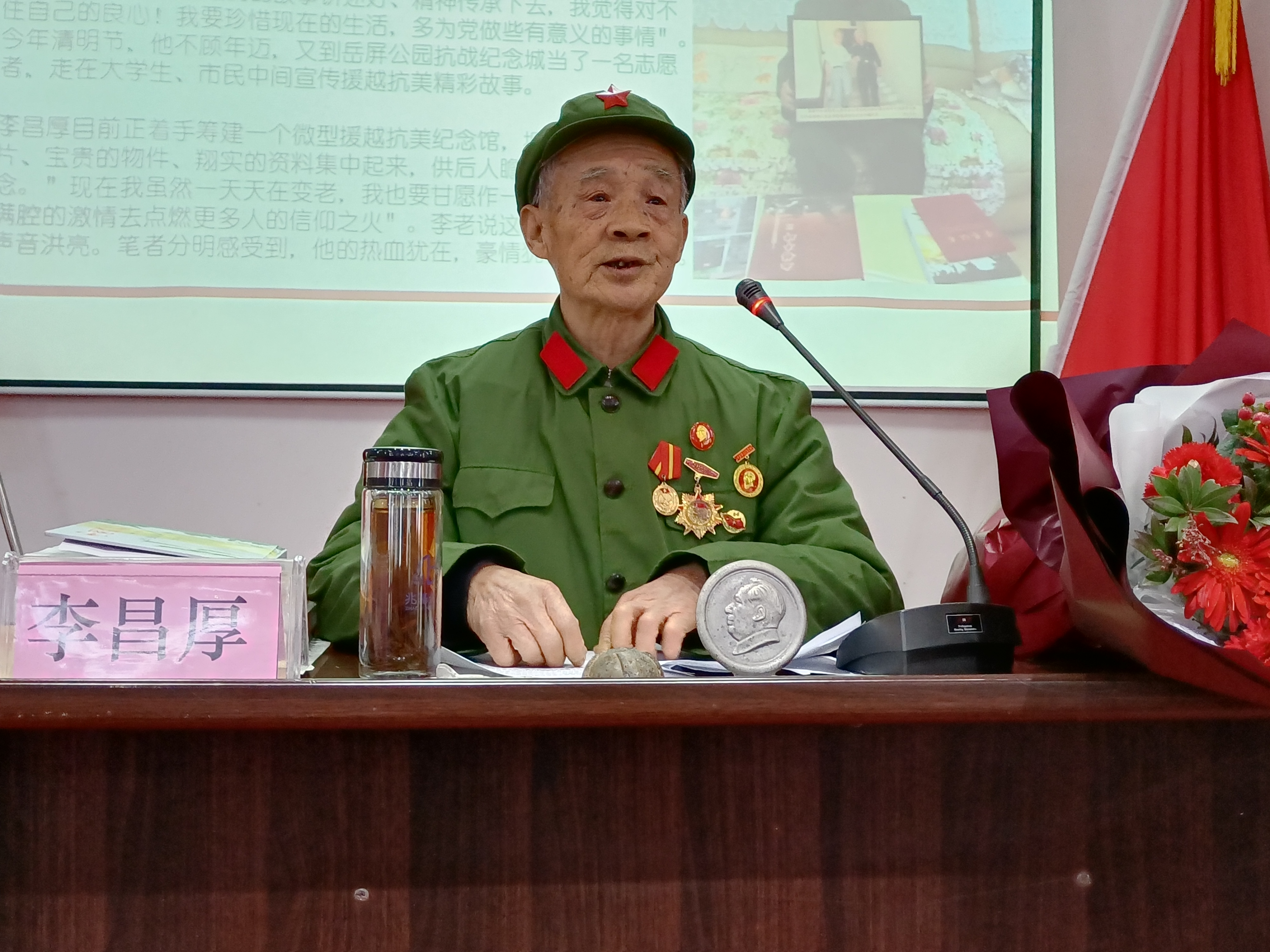 援越抗美老革命李昌厚同志,人称李老,已年近八旬。他1963年入伍,参加过抗美援越和对越反击战,屡建奇功。特别在1967年8月1日一次战斗中,曾活捉过十名美国飞行员,立下战功。回到地方后,李老响应毛主席的号召,选择到条件艰苦的地方工作,党指向哪,他就战斗到哪。退休后,李老更是不忘发挥余热,甘愿做一根火柴,用满腔的激情去点燃大家的信仰之火。李老从青丝到白发,从小李到李老,一生爱国爱党爱军,展现了一名老革命拳拳报国的赤胆忠心。