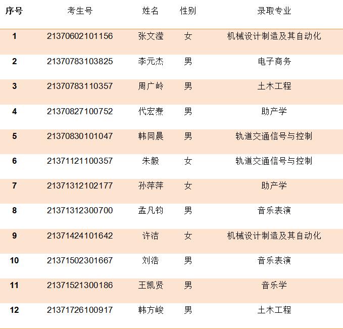 2021年山东省本科录取名单
