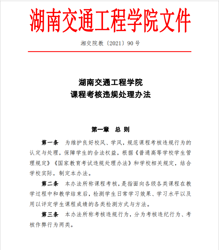 湘交院教〔2021〕90号(课程考核违规处理办法)