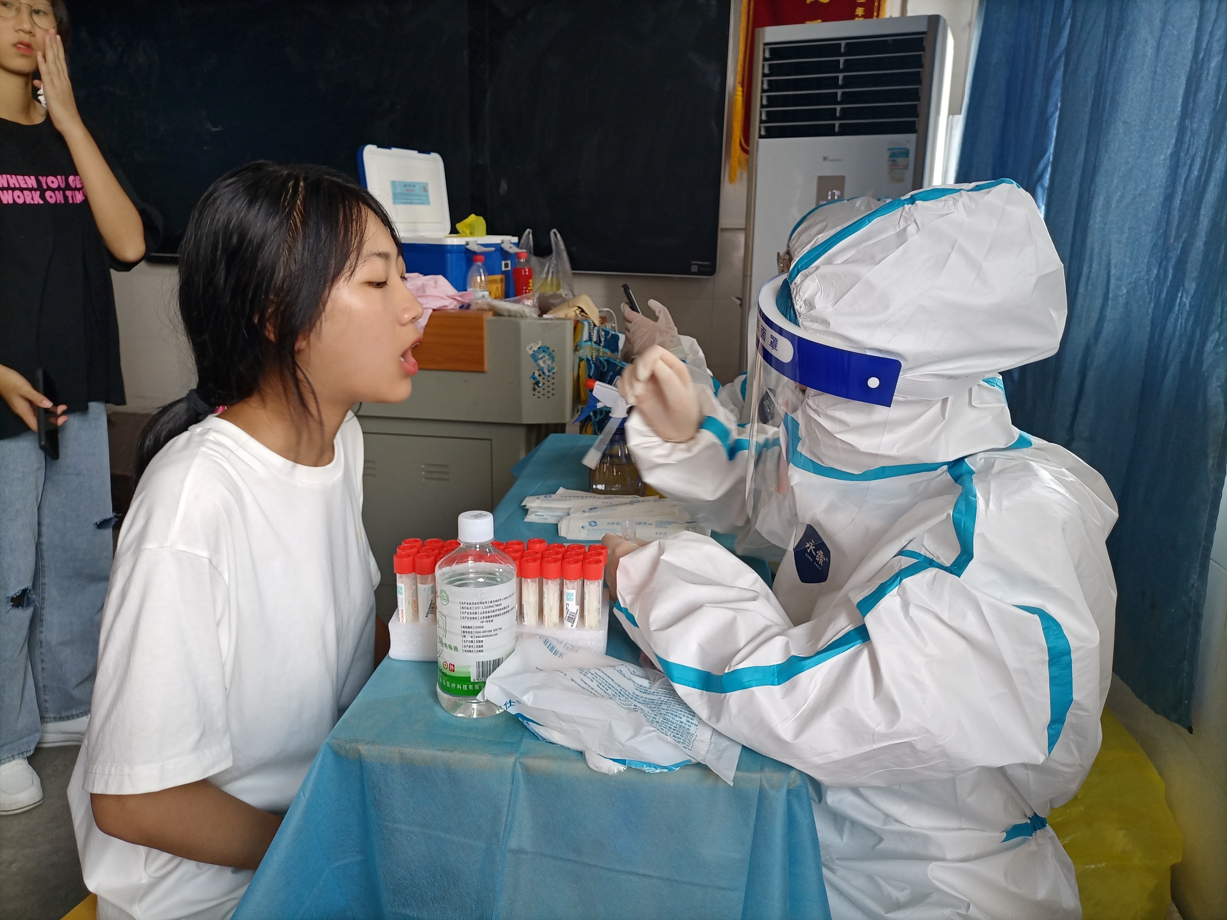 本次核酸检测采样工作时间紧任务重,两天时间,共计完成全校16000余人的检测工作。此次核酸检测工作得到了蒸湘区疾控中心和长沙山水医学检验所医护工作者的大力支援。两天的检测中,广大医护工作者顶着高温奋战在采样一线,他们身穿密不透风的防护服,连续工作数小时,逐一核对、登记、采样;学校多名党员干部、志愿者在检测现场协助工作人员进行口罩发放、人员引导、信息登记等各项工作;学校防控办及相关职能部门分工明确,紧密配合,为检测工作的物资保障、信息采集、场地布置、后勤服务、人员引导提供全方位的服务保障。上午8.30分开始采样,到当天晚上湖南省居民健康卡上就可以查询到结果。他们齐心戮力,为此次全员检测工作全力奋战,用责任和担当为筑牢学校疫情防控坚实防线作出了积极贡献,beat365唯一官方网站师生向你们致敬!