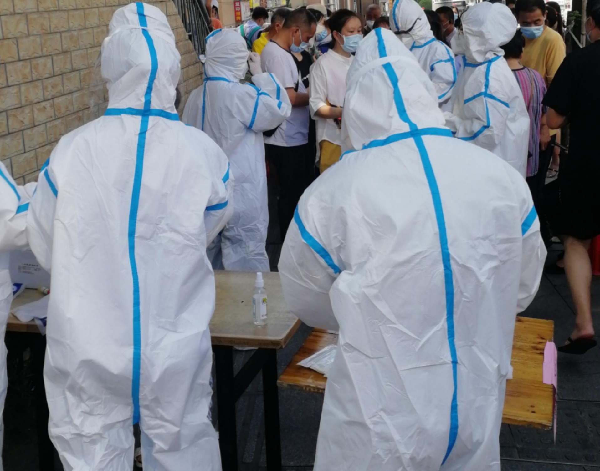 17日8:30开始,6个检测点分别检测 6个二级学院:教学楼一楼大厅3个组,检测电信学院2561名学生及该院全体教职工;图书馆一楼大厅2个组,检测经管学院1634名学生及该院全体教职工;护理楼二楼2个组,检测交通学院1814名学生及该院全体教职工;体育馆101室2个组,检测机电学院1483名及该院全体教职工;实训大楼靠近15栋大厅3个组,检测人文艺术学院2446名学生及该院教职工;体育馆103室1个组,检测护理学院1083名学生及该院教职工。体育馆101或103接受核酸检测校领导及行政处理干部职工。剩下两个组检测其他人员。