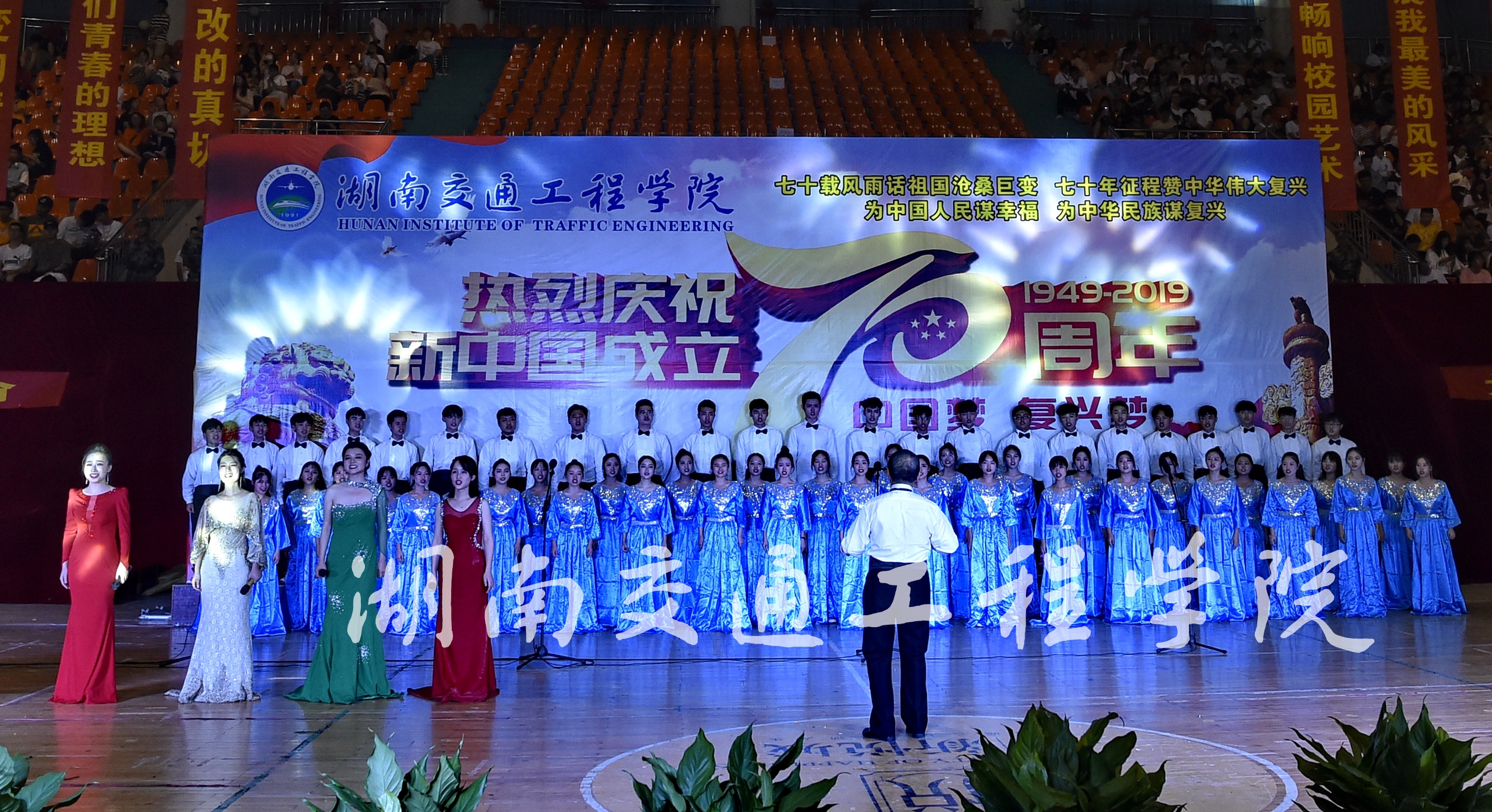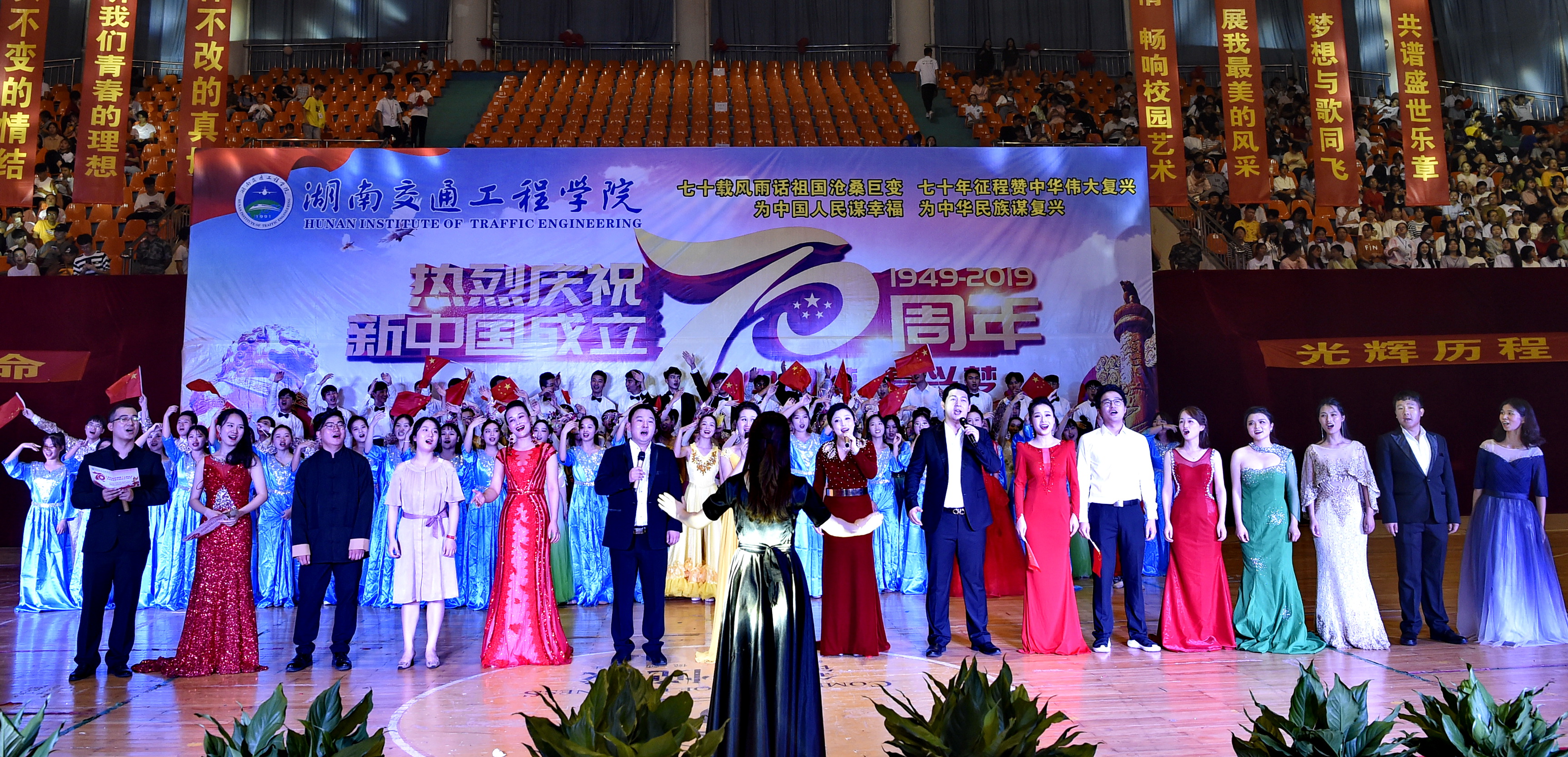 本网讯(通讯员李建华吴思仪摄影李建华)9月29日,beat365唯一官方网站庆祝新中国成立70周年文艺晚会在学校体育馆盛大举行,校领导与全校师生4000余人一同观看了晚会。