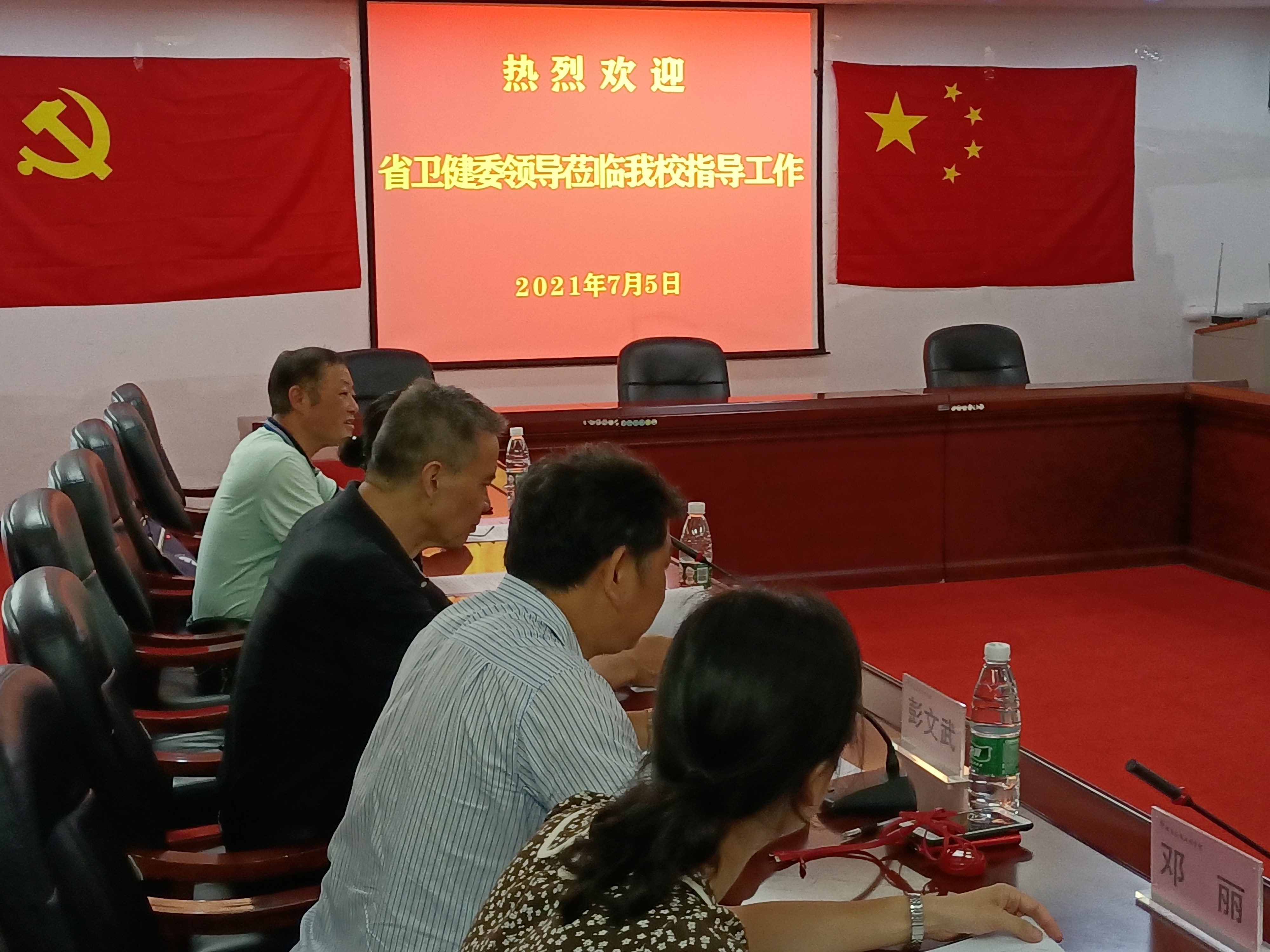 本网讯(记者 摄影 赵红深) 7日5日下午,湖南省卫健委科教处长石国勇莅临beat365指导工作,对学校护卫类专业办学情况开展工作调研。学校校长陈治亚、副董事长刘秋菊、常务副校长彭文武,护理学院院长王兵、党总支书记邓丽等陪同调研。