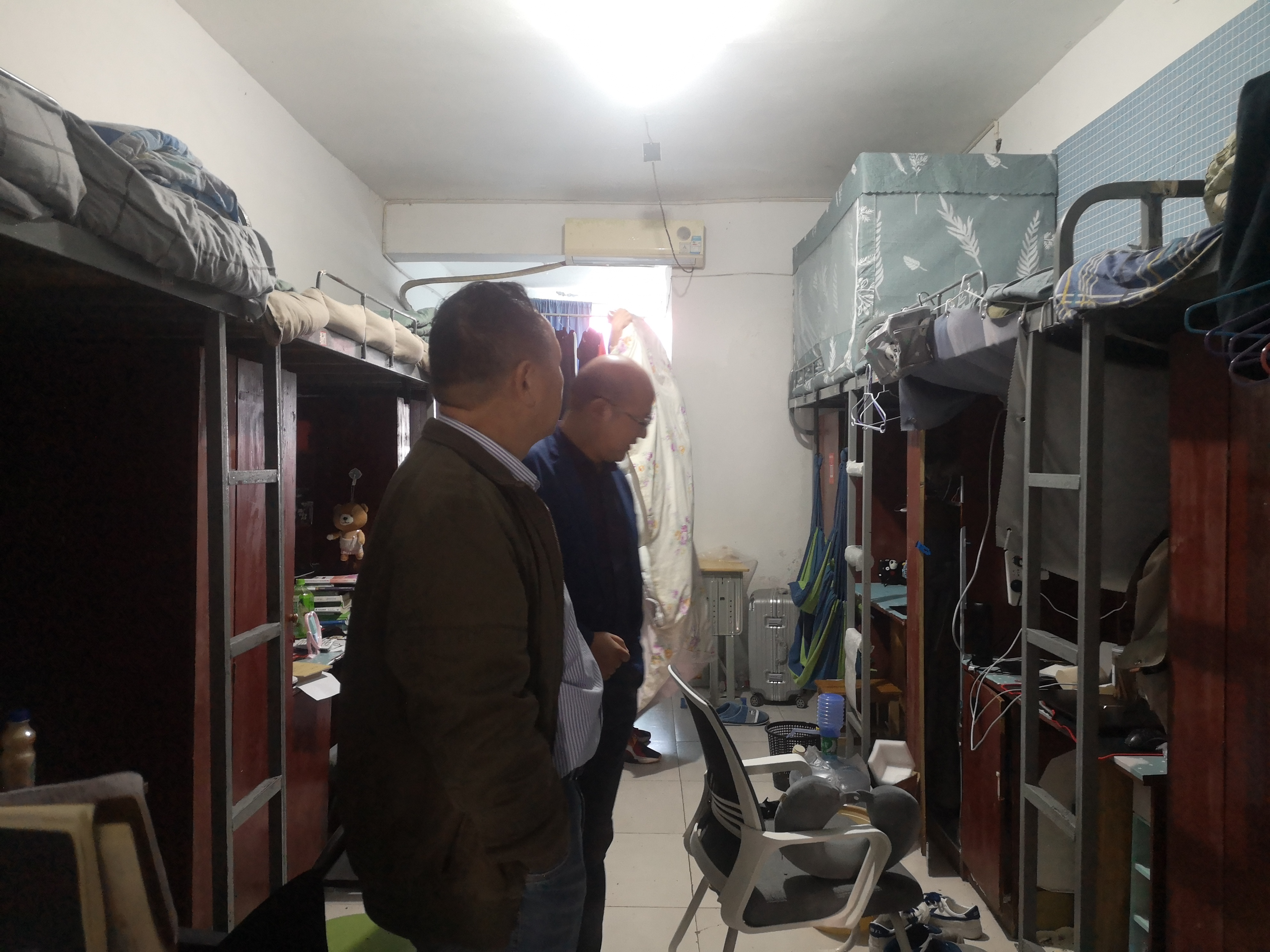 抓好大学生宿舍管理,是打通思政工作的最后一公里。按照惯例,会前一个小时,副校长余孟辉带领各二级学院的党总支书记一起走进了宿舍楼18栋,察看机电学生学生宿舍,了解18栋学生自治管理运行情况。