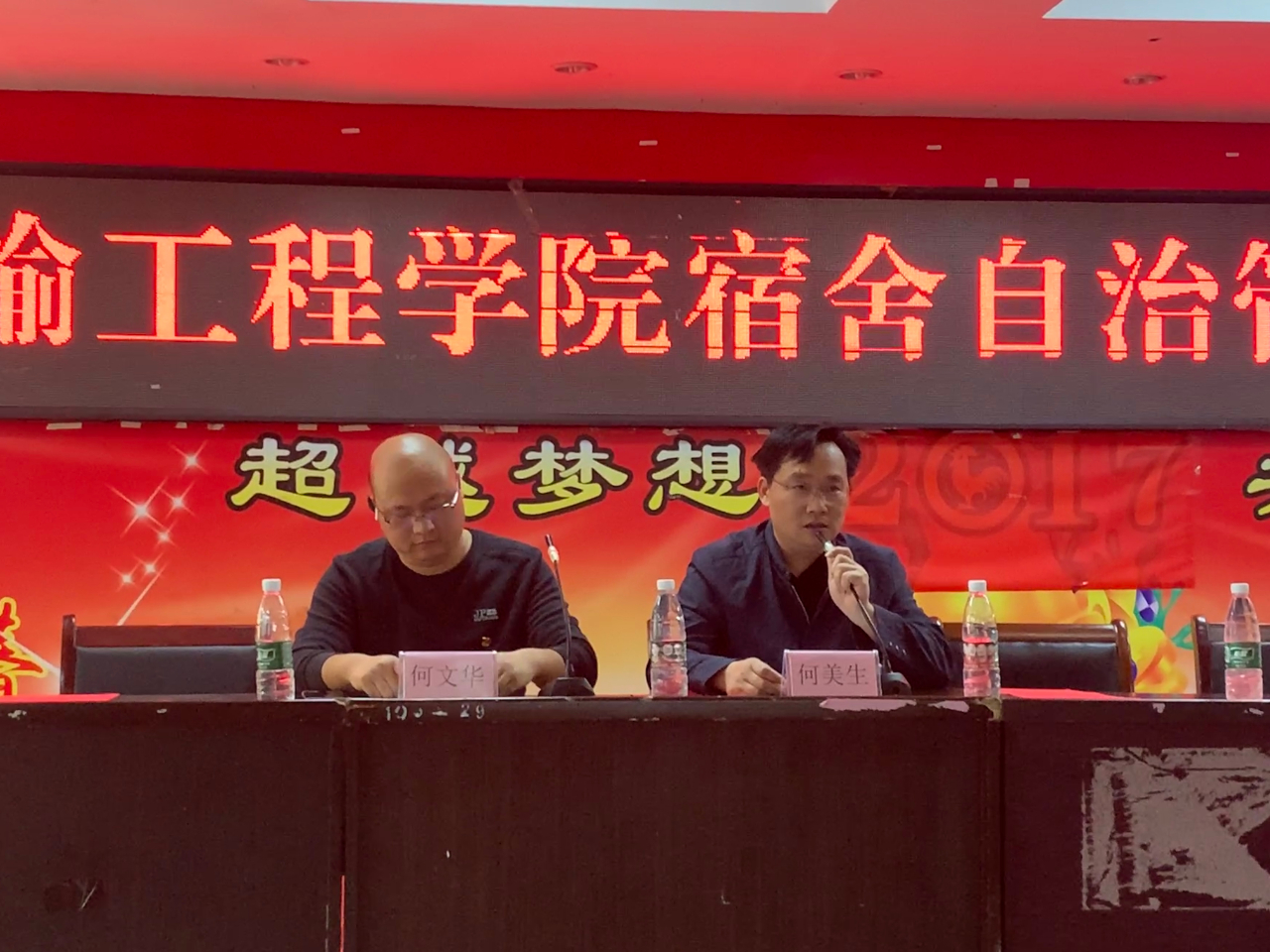 大会第二项:党总支副书记何文华讲话。何文华副书记讲述了宿舍管理章程的主要内容,从宿舍的环境、条件、制度等各个方面对宿舍管理工作进行了介绍。然后对委员会的组织结构与工作进行讲解