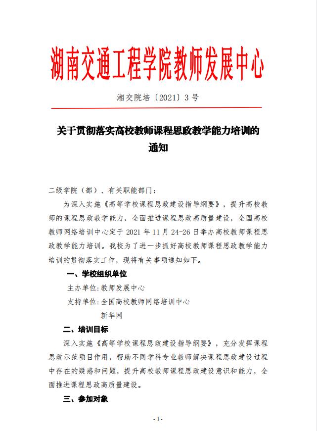 关于贯彻落实高校课程思政教学能力培训的通知