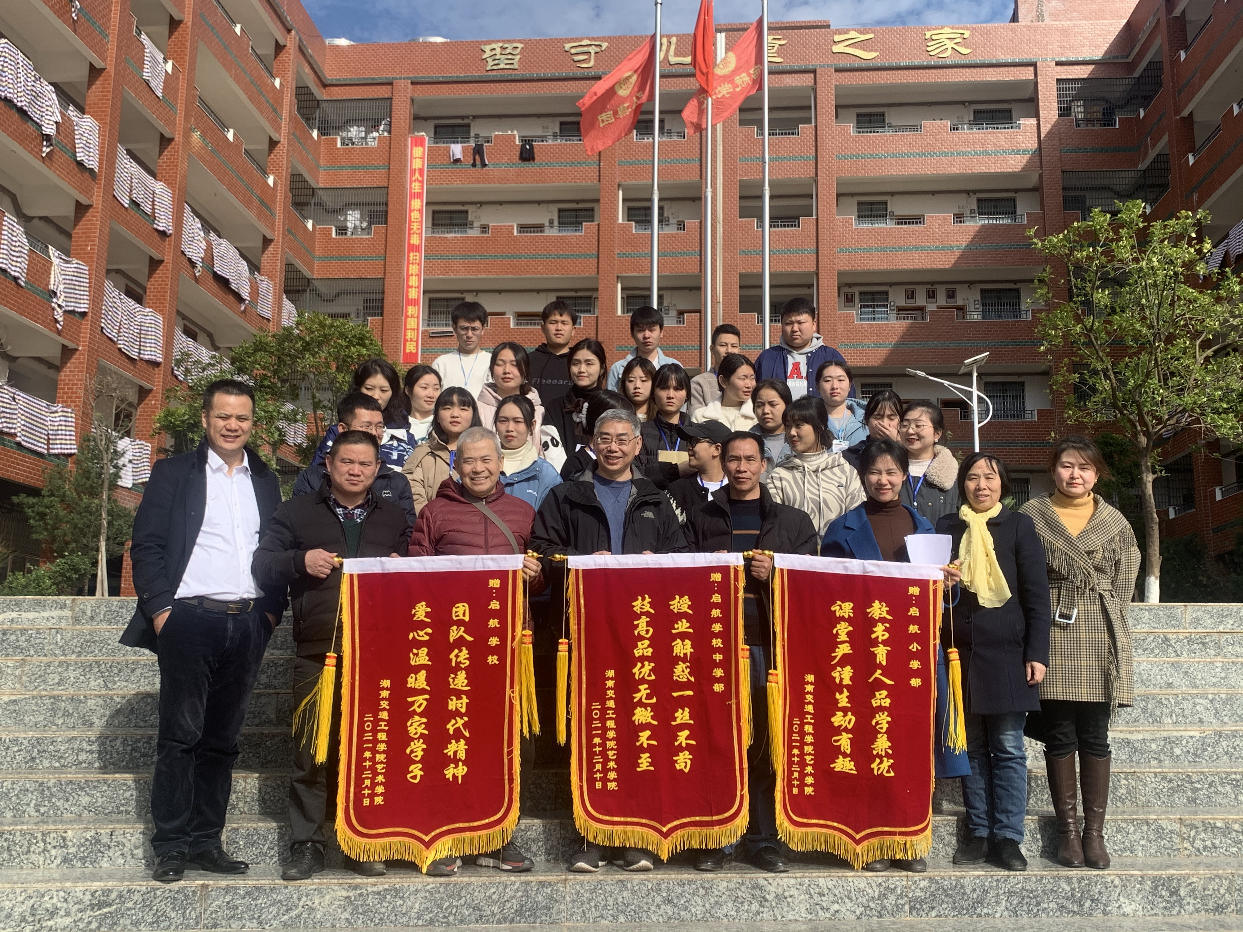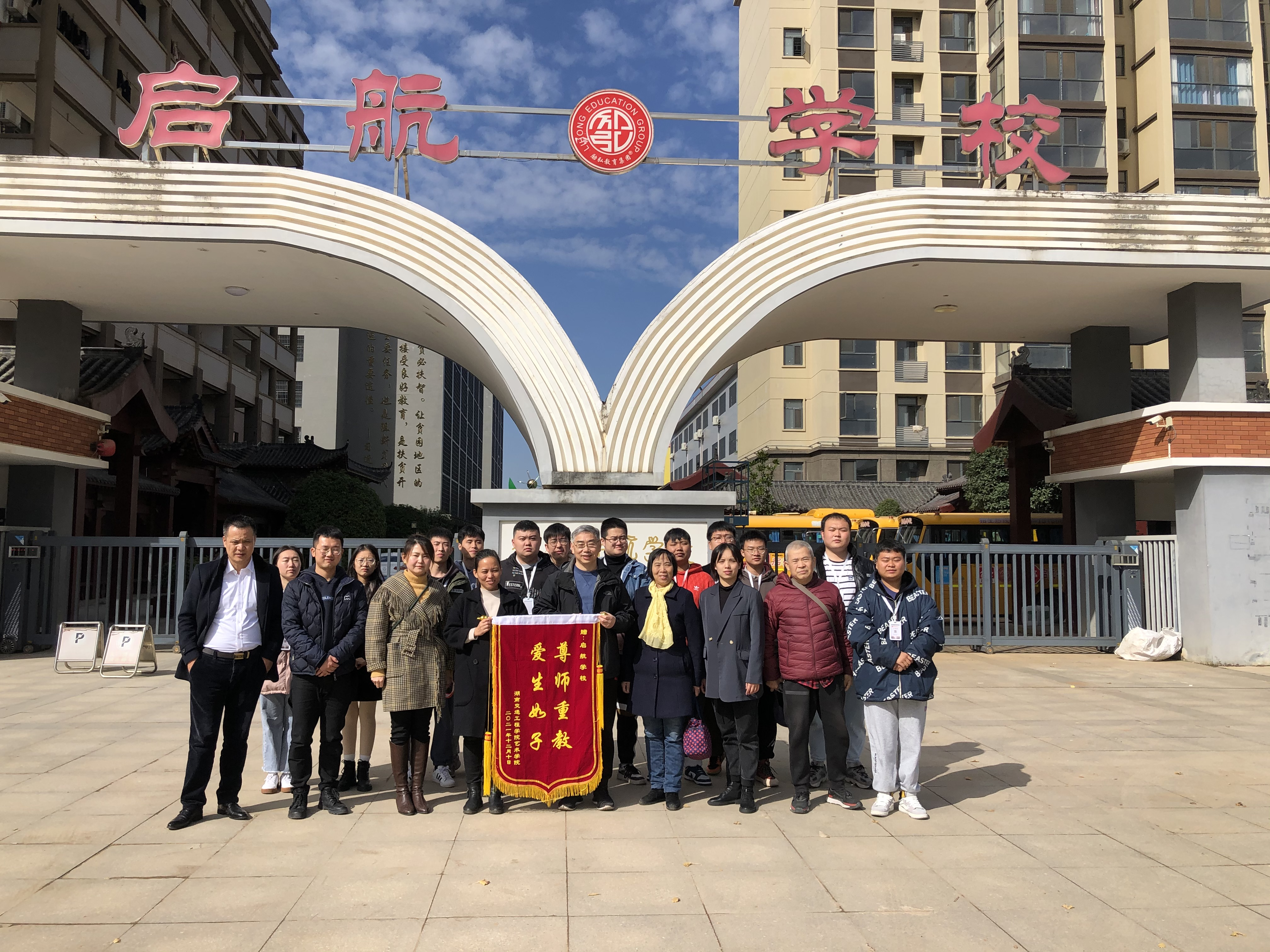樊晓平对祁东启航学校表达感谢并赠送了锦旗,并期待双方今后继续加强合作,拓展更多的专业学生实习,并尽快签署实习就业基地协议并挂牌。