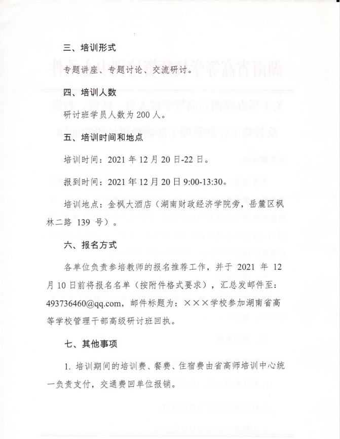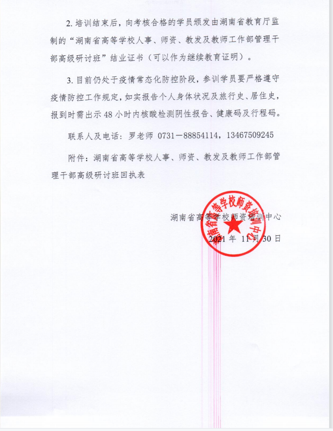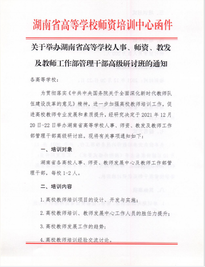 转发:关于举办湖南省高等学校人事、师资、教发及教师工作部管理干部高级研讨班的通知