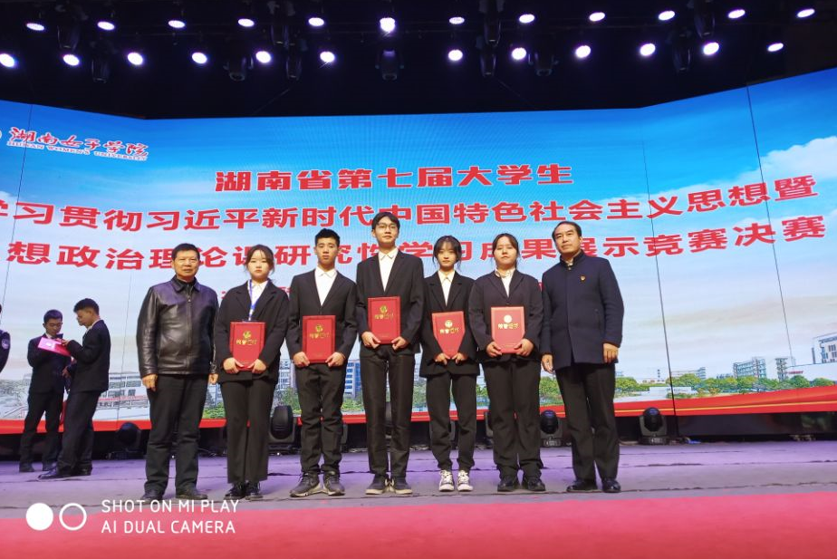 根据省教育厅《关于开展湖南省大学生学习贯彻习近平新时代中国特色社会主义思想暨第七届思想政治理论课研究性学习成果展示竞赛的通知》文件精神,学校马克思主义学院院长张齐政、党支部书记 召开专题会议,要求全体思政教师提高认识、大力宣传、有序组织、认真选拔、全程参与和同步指导各学习小组的研究性学习。本次赛事得到了学校各级领导与辅导员的高度关心、关注和支持,经管学院朱忠祥院长、辅导员赵春香等组织与指导入围学生进行讲稿研讨、课件打磨,在师生共创和同伴中,推动赛事整体水平提升。
