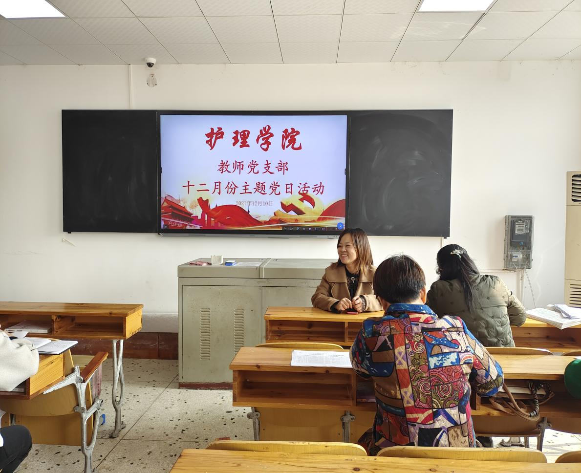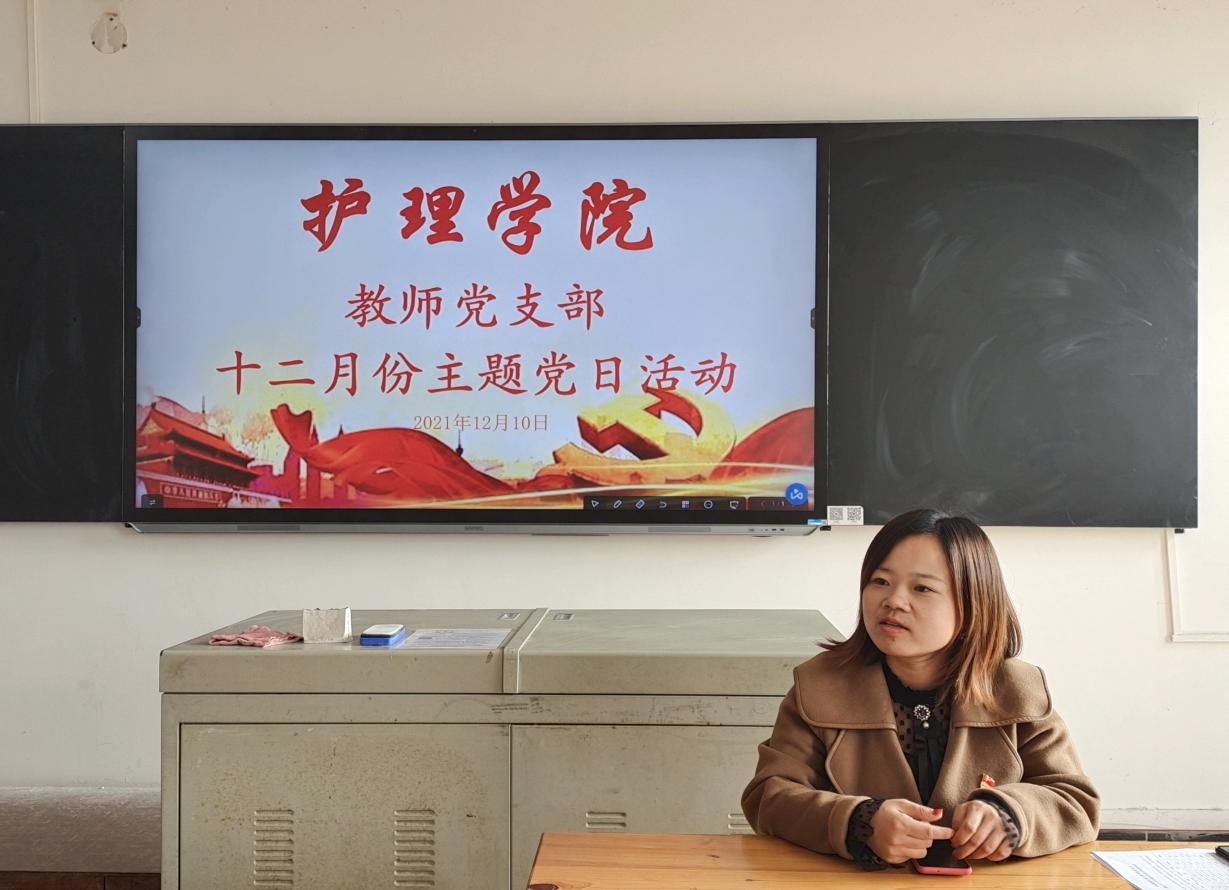 12110中午护理学院教师党支部在教学楼103教室举行十二月份主题党日活动护理学院党总支书记邓丽党总支副书记兼团总支书记肖桂香全体教师党员参加了本次活动活动教师党支部书记周艳平主持