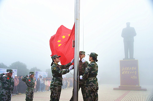 上午七时,升国旗仪式正式开始,在校国旗护卫队的护卫下,鲜艳的五星红旗在雄壮嘹亮的国歌奏唱中冉冉升起。